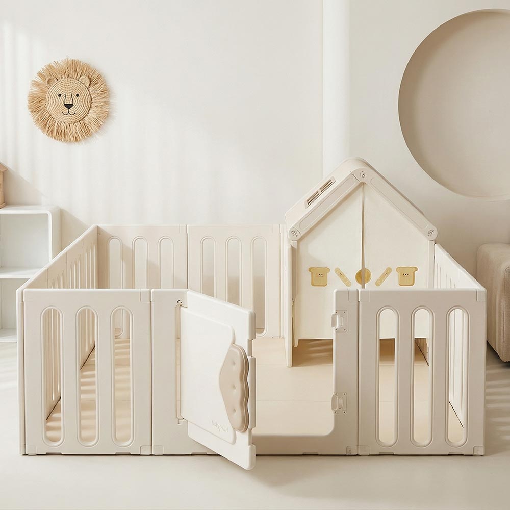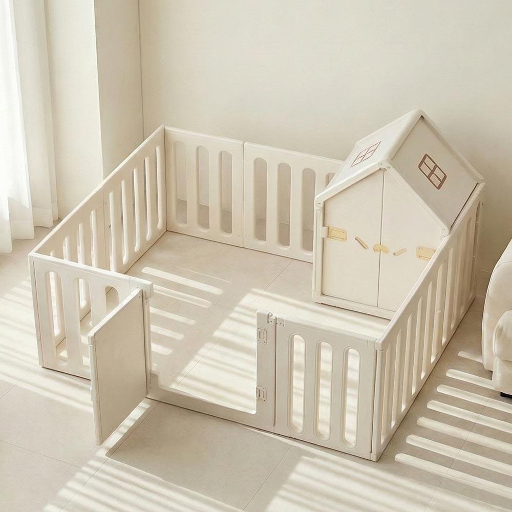 此外,具備遊戲功能的圍欄,如帳篷遊戲設計,更能提升孩子的探索與互動體驗,讓圍欄不只是安全工具,更成為成長的一部分。