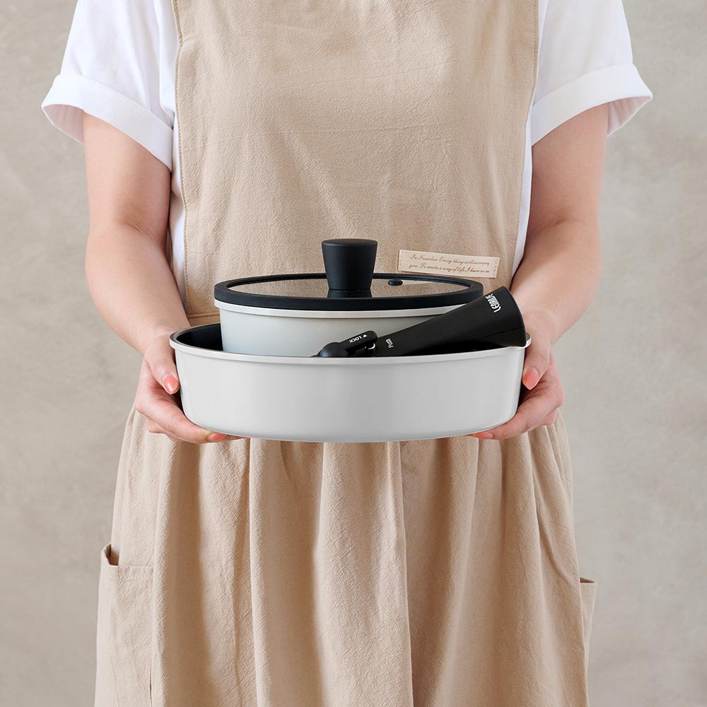 1 . 請勿放入✖微波爐 及 ✖洗碗機 中使用;矽膠握柄及鍋蓋請勿放入烤箱。