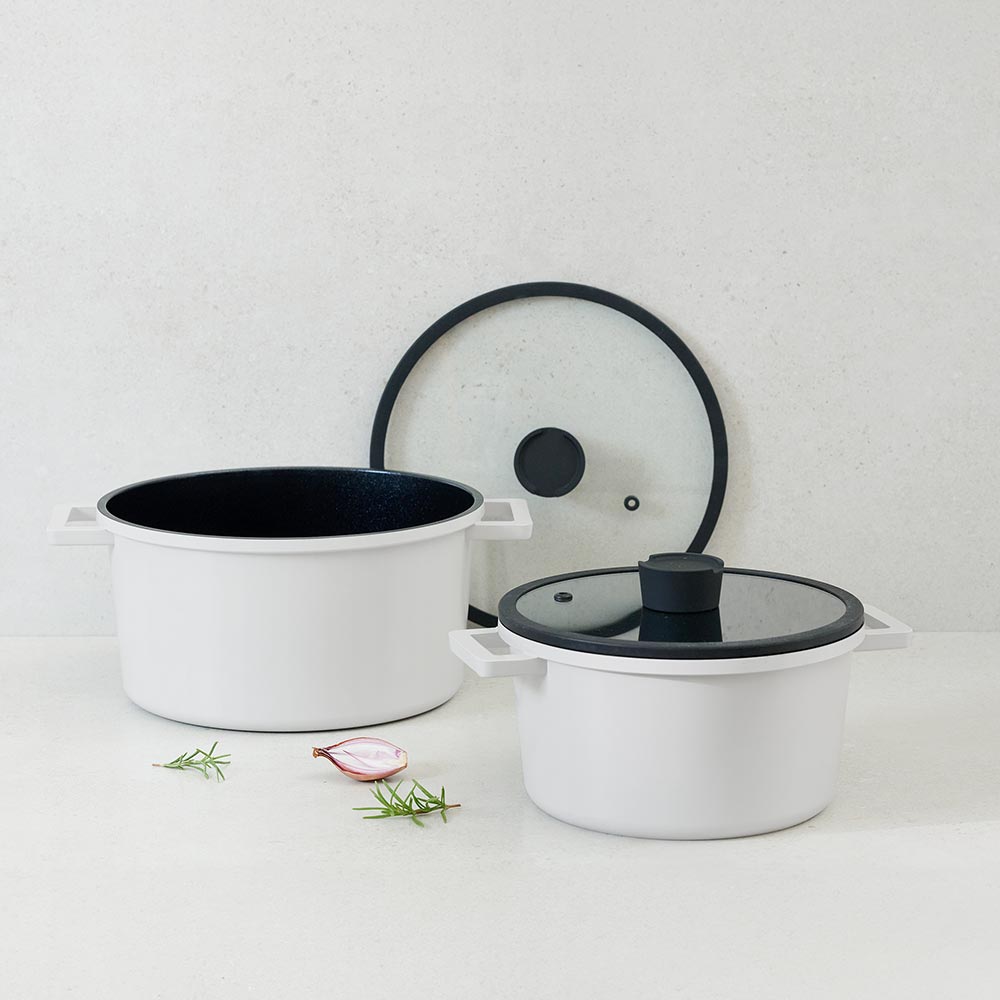 1 . 請勿放入✖微波爐 及 ✖洗碗機 中使用;矽膠握柄及鍋蓋請勿放入烤箱。