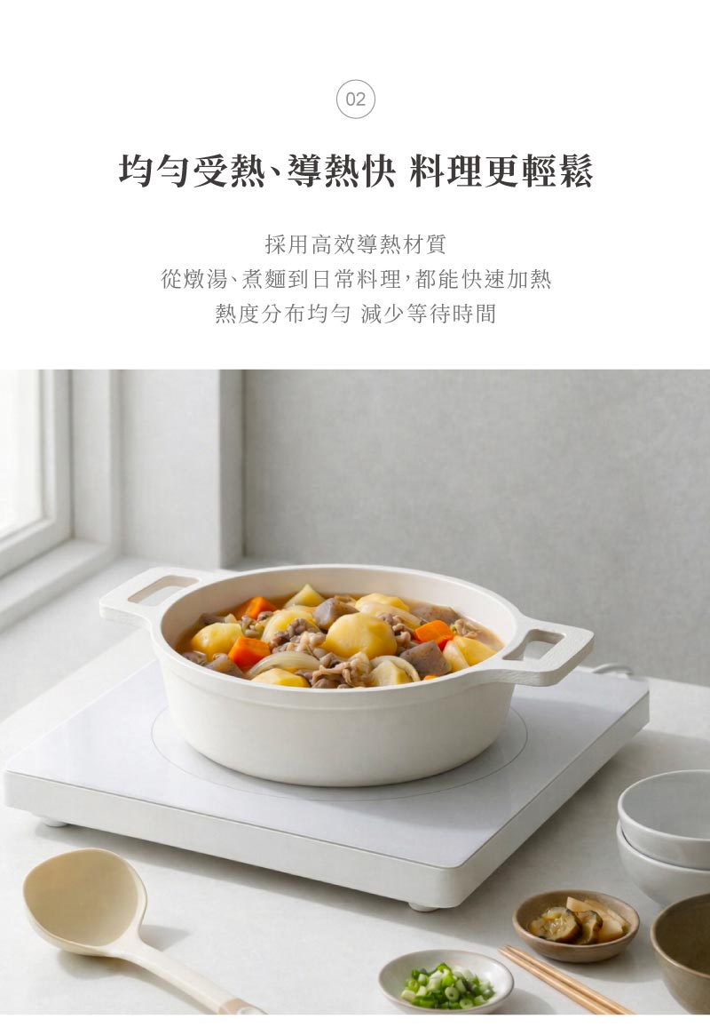 2 . 因鍋子導熱性高,建議使用中火以下烹調即可。
