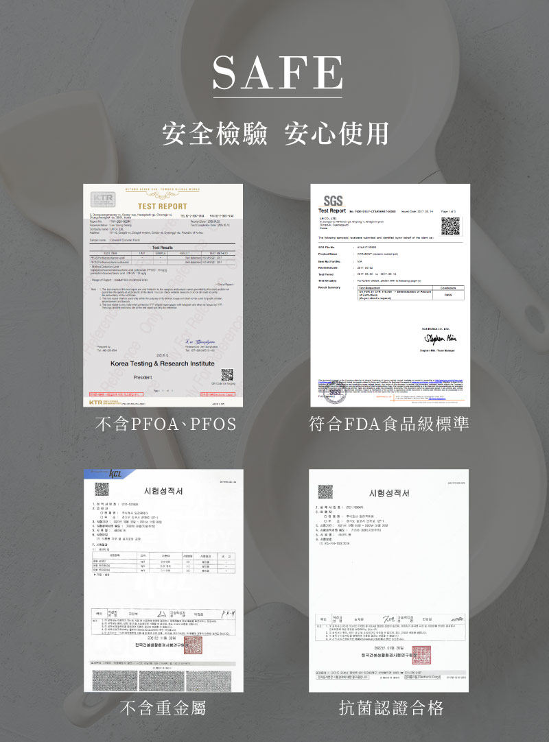 5 . 清洗時勿使用鋼刷、強效或粗顆粒清潔劑,避免破壞表面陶瓷塗層。